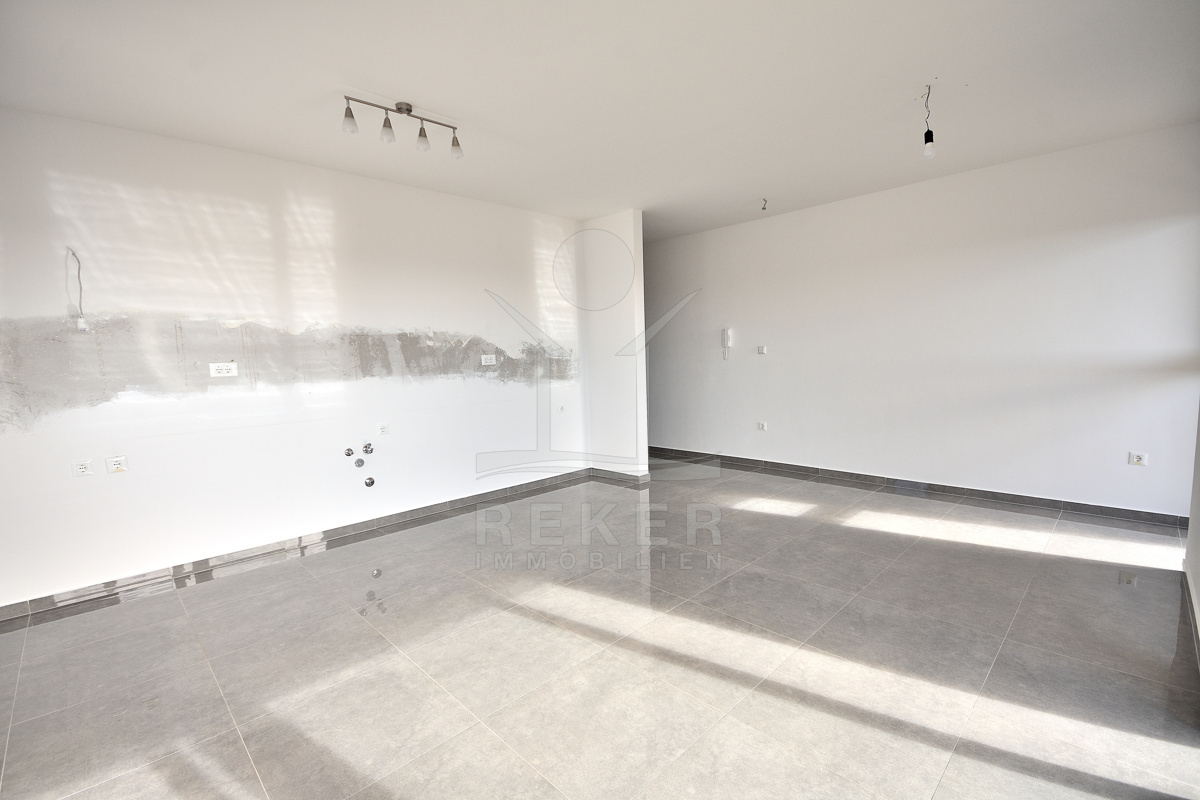Die Raumaufteilung ist funktional und modern. Sie betreten die Wohnung über den Eingangsbereich und gehen weiter in den Flur. Von hier aus erreichen Sie zwei Schlafzimmer und ein Badezimmer. Der offene Wohnbereich verbindet Wohnküche, Essplatz und Wohnzimmer. Große Fensterflächen bringen viel Tageslicht in die Räume und schaffen eine freundliche Atmosphäre. Im Außenbereich steht Ihnen eine überdachte Terrasse mit 10,22 m² zur Verfügung. Sie bietet einen geschützten Platz im Freien. So nutzen Sie diesen Bereich zu verschiedenen Tageszeiten und auch bei wechselhaftem Wetter angenehm.