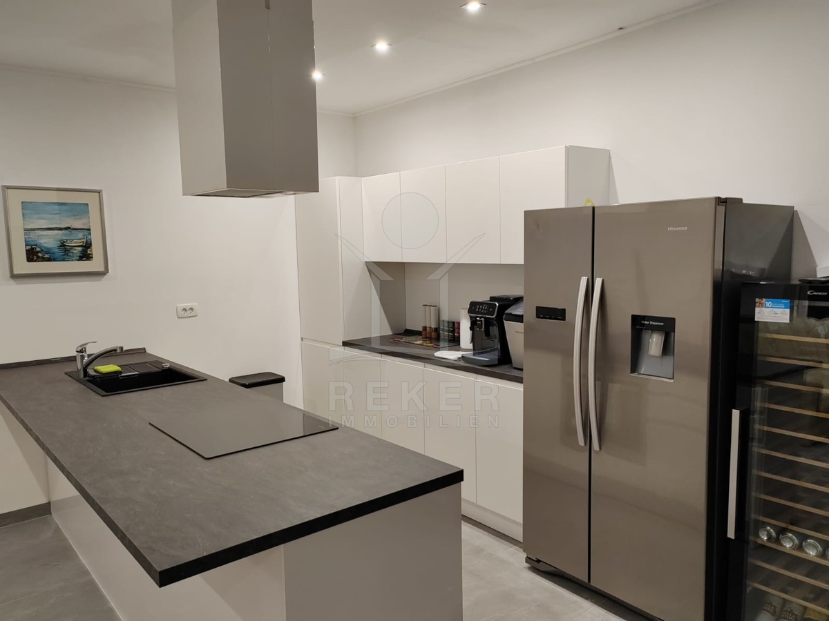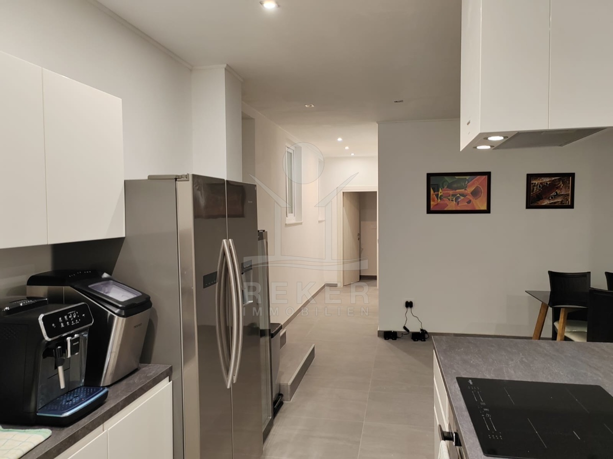 Die Wohnung liegt im ersten Stock und wurde 2023 komplett renoviert. Luxuriös und geschmackvoll eingerichtet. Sie ist bezugsfertig: ohne Aufwand, ohne Baustellen. Vier Schlafzimmer, jedes mit eigenem Bad. Viel Platz, viel Privatsphäre. Der offene Wohn-, Ess- und Küchenbereich verbindet alles, was man braucht. Dazu ein separates Fernsehzimmer, ideal zum Abschalten. Ob als Feriendomizil oder zur Vermietung … diese Wohnung funktioniert.