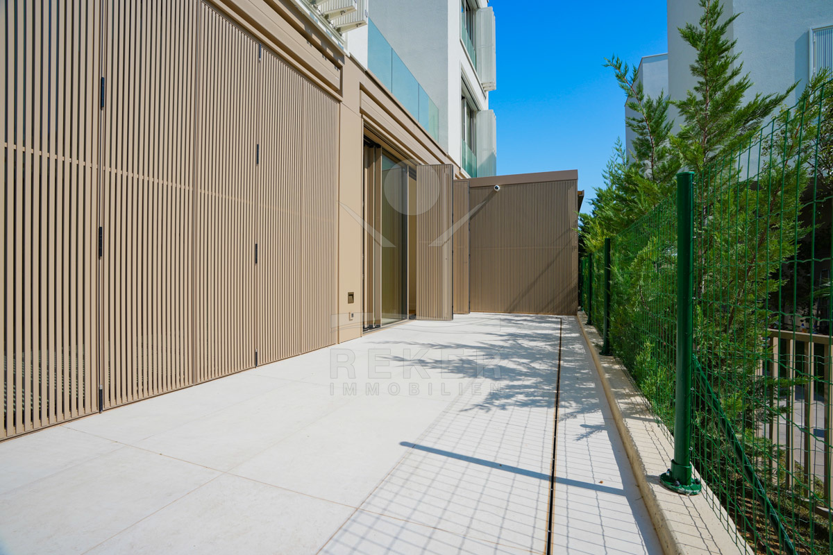 Die Erdgeschosswohnung bietet eine Gartenfläche von 24 m² und beeindruckt durch ihre hochwertige Bauweise aus dem Jahr 2024. Das Gebäude ist unterkellert und überzeugt mit gehobenen Ausstattungsmerkmalen wie Klimaanlage, Fußbodenheizung und modernen Sanitäranlagen. Elektrische Jalousien und 3-fach-Verglasung sorgen für höchsten Wohnkomfort und Energieeffizienz. Als zusätzlichen Komfort steht den Bewohnern ein Stellplatz von 12 m² zur Verfügung.
