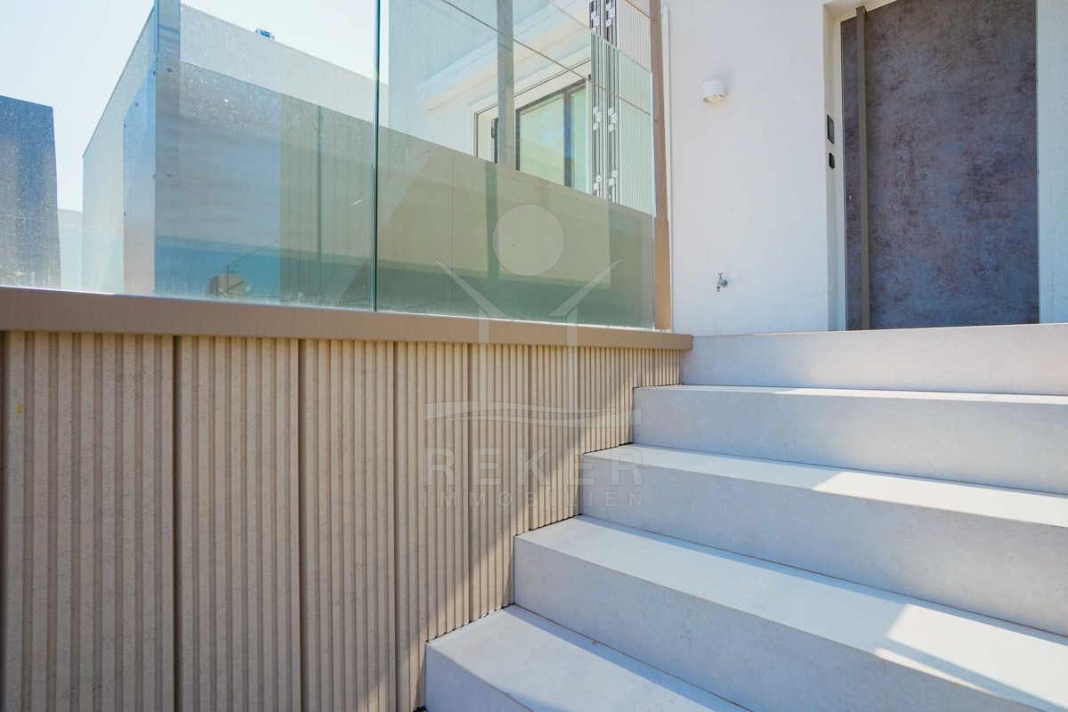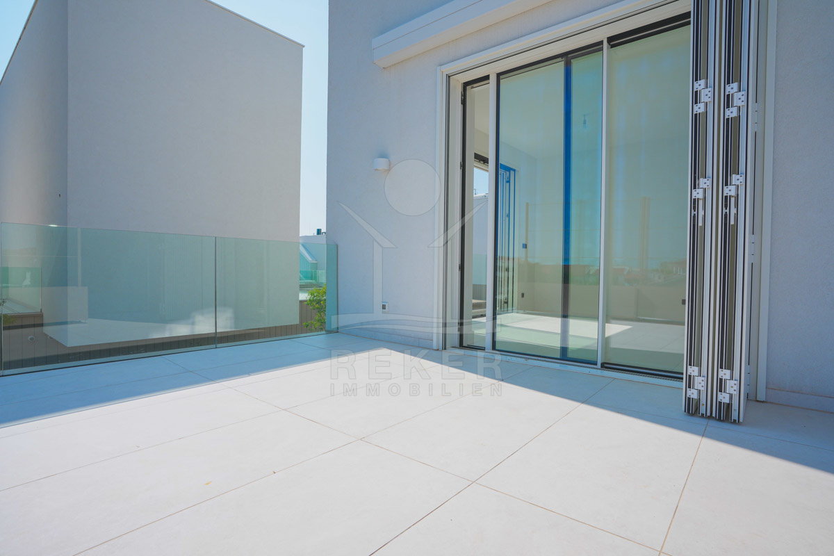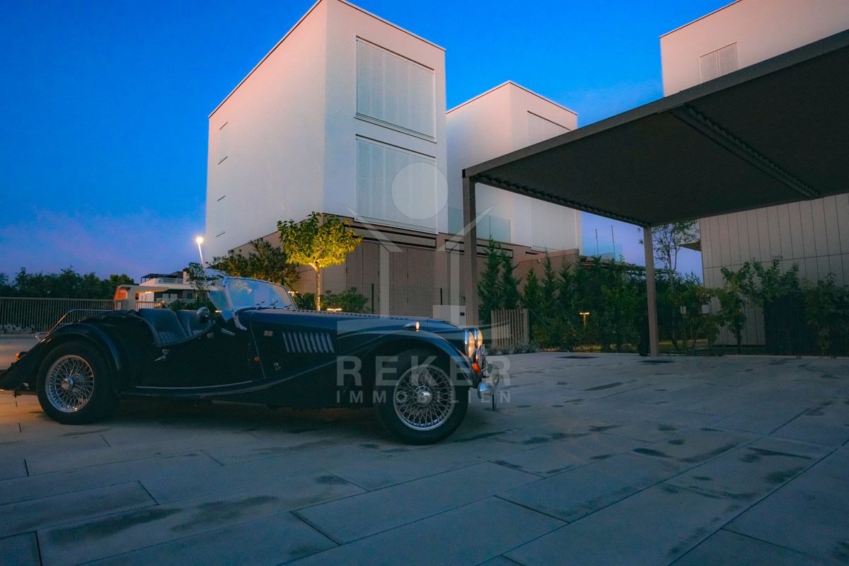 Das Anwesen erstreckt sich über zwei Etagen und bietet Ihnen eine großzügige Wohnfläche von 131 m². Erbaut im Jahr 2024, besticht die Wohnung durch hochwertige Bauweise und erstklassige Ausstattungsmerkmale. Zu den Annehmlichkeiten gehören eine Klimaanlage, Fußbodenheizung, moderne Sanitäreinrichtungen, elektrische Jalousien und 3-fach-Verglasung, die sowohl Komfort als auch Energieeffizienz garantieren. Zudem steht Ihnen ein Stellplatz von 12 m² zur Verfügung, um Ihre Fahrzeuge sicher unterzubringen.