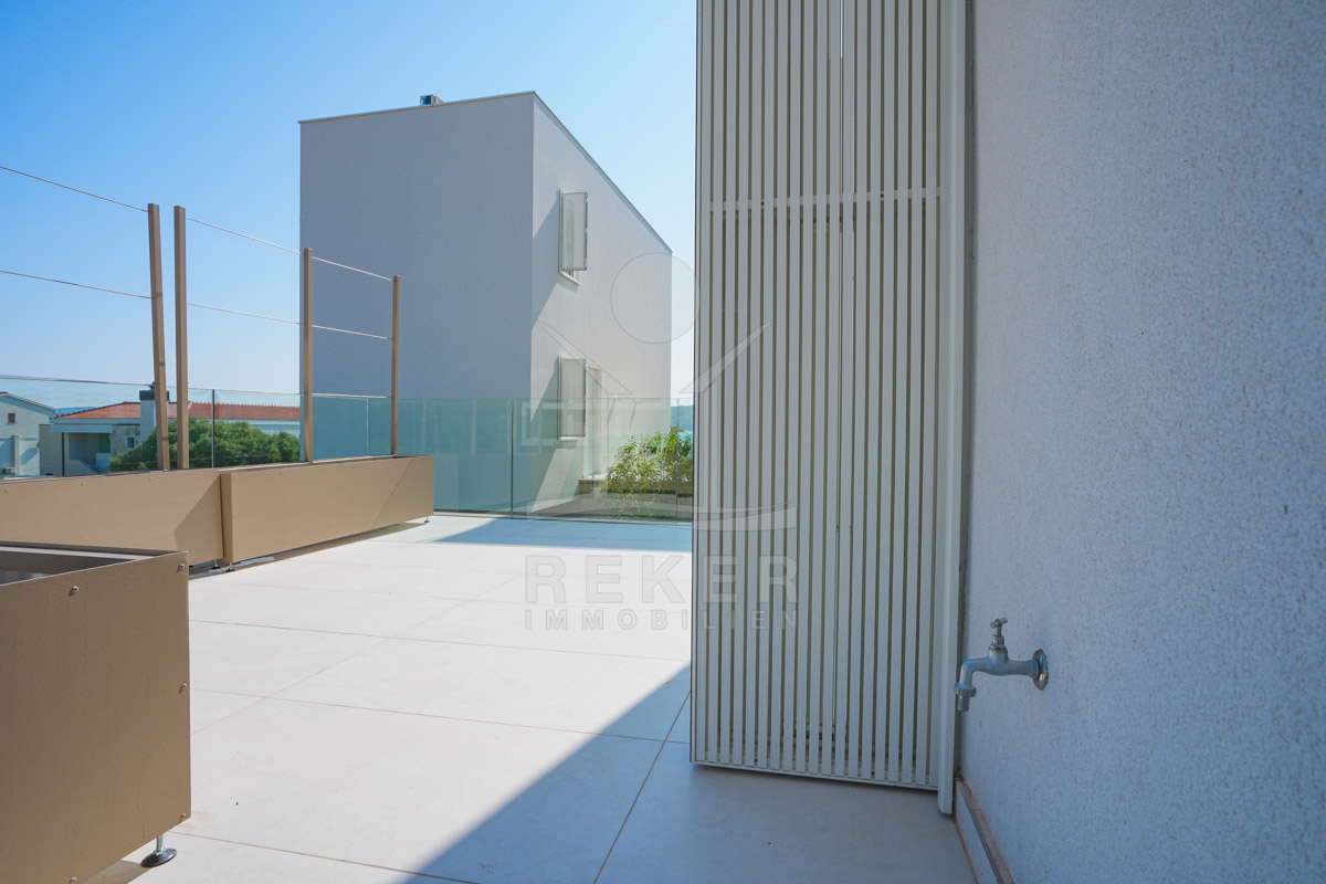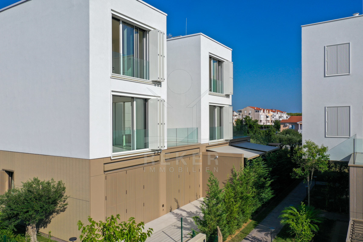 In der malerischen Küstenstadt Turanj erwartet Sie diese luxuriöse Neubau-Maisonette in einer Toplage. Nur 80 Meter vom glitzernden Meer entfernt, genießen Sie eine hervorragende Kombination aus Erholung und Abenteuer. Die wunderschöne Uferpromenade lädt zu ausgedehnten Spaziergängen ein und führt Sie direkt ins Zentrum des charmanten Ferienorts Sveti Filip i Jakov. Hier finden Sie gemütliche Cafés und Restaurants, die das mediterrane Flair widerspiegeln. Die traumhaften Badebuchten in der Umgebung sind perfekt für einen entspannten Tag am Meer. Zudem sind die historischen Sehenswürdigkeiten der Stadt Biograd, nur ca. 7 km entfernt, einen Besuch wert. Naturliebhaber finden auf der nahegelegenen Insel Pasman, nur 9 km entfernt, einsame Buchten – ideal für einen ruhigen Retreat. Diese Lage ist ein echtes Juwel, das sowohl Entspannung als auch eine Fülle kultureller und natürlicher Schönheiten bietet.