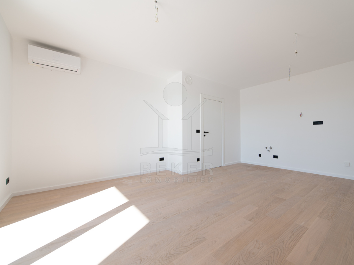 Umag, ein charmantes Küstenstädtchen an der Westseite Istriens. Hier steht ein modernes Wohnhaus, nur etwa 700 Meter vom Meer entfernt. Eine Lage, die Ruhe und Nähe zum Leben vereint. In der Umgebung finden Sie alles, was den Alltag angenehm macht: Geschäfte, Kindergarten, Schule, Krankenhaus sowie zahlreiche Sport- und Freizeitangebote, Restaurants und Cafés. Ob für den dauerhaften Aufenthalt oder den Urlaub – dieser Ort bietet ein angenehmes Umfeld zum Wohnen und Erholen.