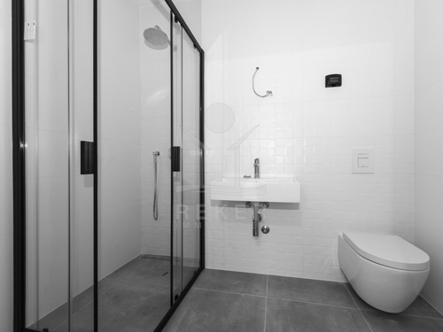 Das Schlafzimmer liegt ruhig und bietet Platz für erholsame Nächte. Das moderne Badezimmer ergänzt die klare Raumstruktur auf stimmige Weise. Die Multisplit-Klimaanlage sorgt das ganze Jahr über für ein angenehmes Klima und arbeitet energieeffizient.