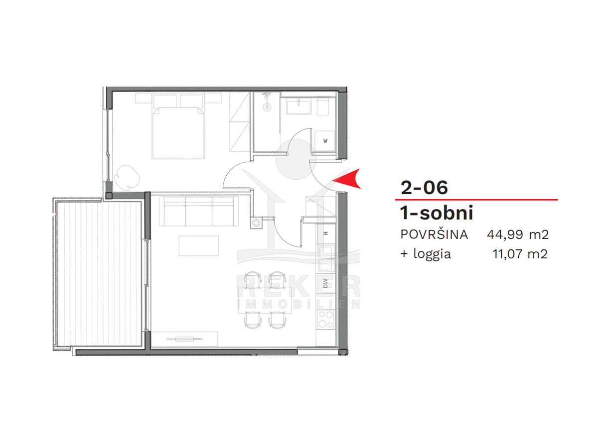 Der offene Wohn-, Ess- und Küchenbereich ist das Herzstück des Zuhauses. Von hier gelangen Sie auf den 11,07 m² großen Balkon, einen geschützten Platz im Freien mit Raum für eine kleine Sitzecke oder gemütliche Stunden an der frischen Luft.