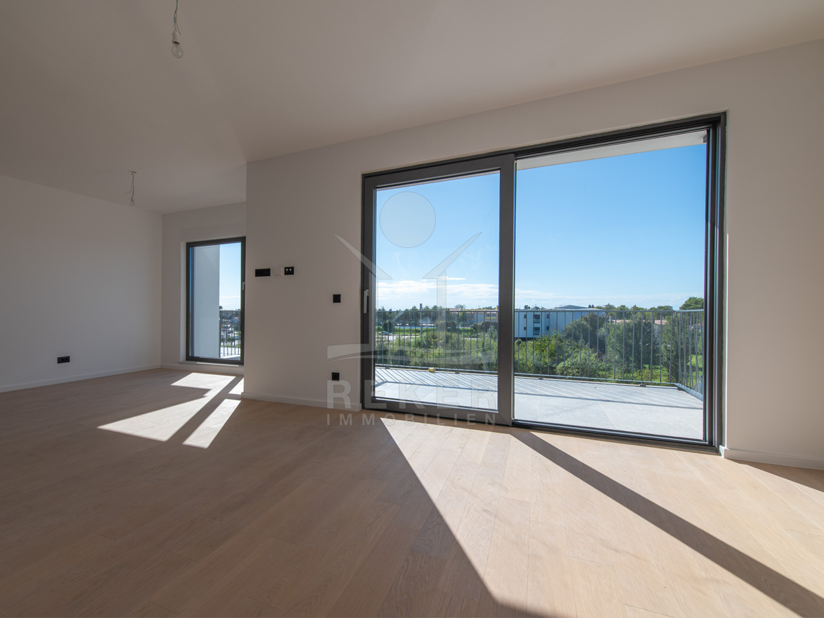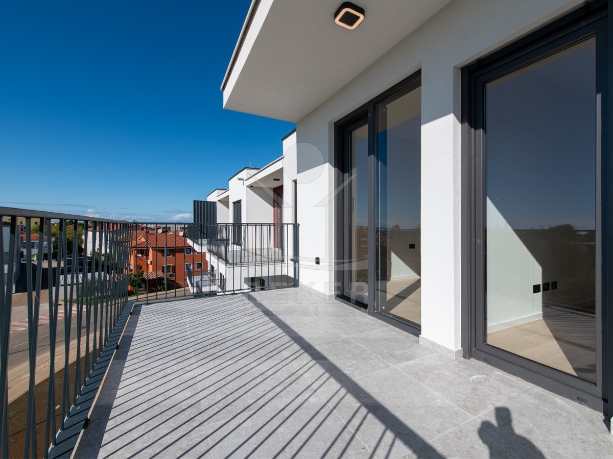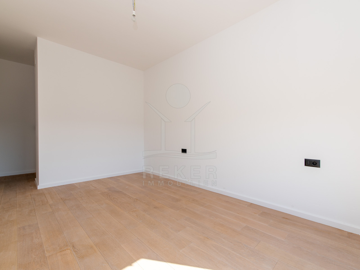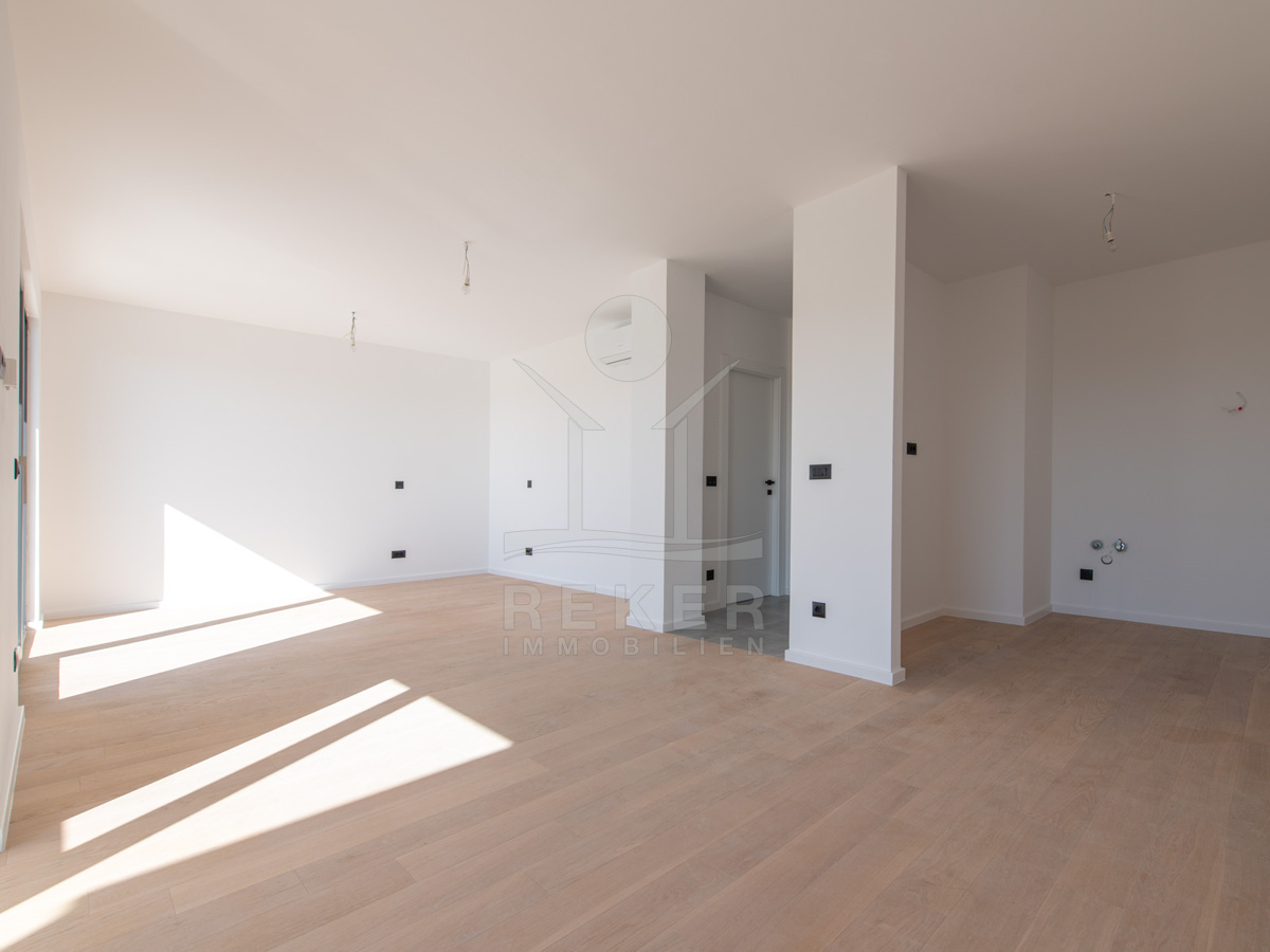 Umag, ein charmantes Küstenstädtchen an der Westseite Istriens. Hier steht ein modernes Wohnhaus, nur etwa 700 Meter vom Meer entfernt. Eine Lage, die Ruhe und Nähe zum Leben vereint. In der Umgebung finden Sie alles, was den Alltag angenehm macht: Geschäfte, Kindergarten, Schule, Krankenhaus sowie zahlreiche Sport- und Freizeitangebote, Restaurants und Cafés. Ob für den dauerhaften Aufenthalt oder den Urlaub – dieser Ort bietet ein angenehmes Umfeld zum Wohnen und Erholen.