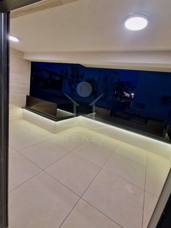 Klimatisierung in allen Räumen sowie elektrische Fußbodenheizung in den Badezimmern sorgen für spürbaren Komfort. Elektrische Jalousien, Moskitonetze, großformatige Keramikfliesen im Format 90 × 90 mm, Travertin, Gebrite-Fliesen, Sanitärkeramik von Grohe, maßgefertigte Badezimmermöbel und LED-Ambientbeleuchtung prägen den hochwertigen Ausbaustandard. Zwei Außenstellplätze befinden sich direkt vor dem Haus. Sie sind der Wohnung fest zugeordnet.