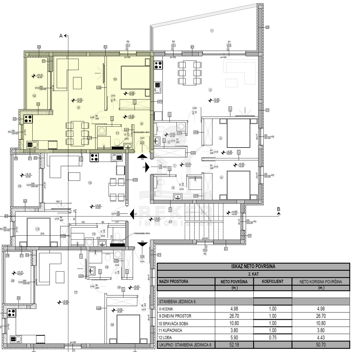 Die charmante Wohnung mit einer Wohnfläche von 52 m² bietet einen offenen Wohnbereich, der Ess- und Küchenbereich perfekt integriert. Das helle Schlafzimmer ist ideal für entspannte Nächte. Das Badezimmer bietet modernen Komfort. Aber das Highlight ist die zugängliche Loggia von 7 m², die einen atemberaubenden Blick auf das Meer bietet und ein ideales Plätzchen für Ihr Frühstück oder entspannende Abende im Freien ist.