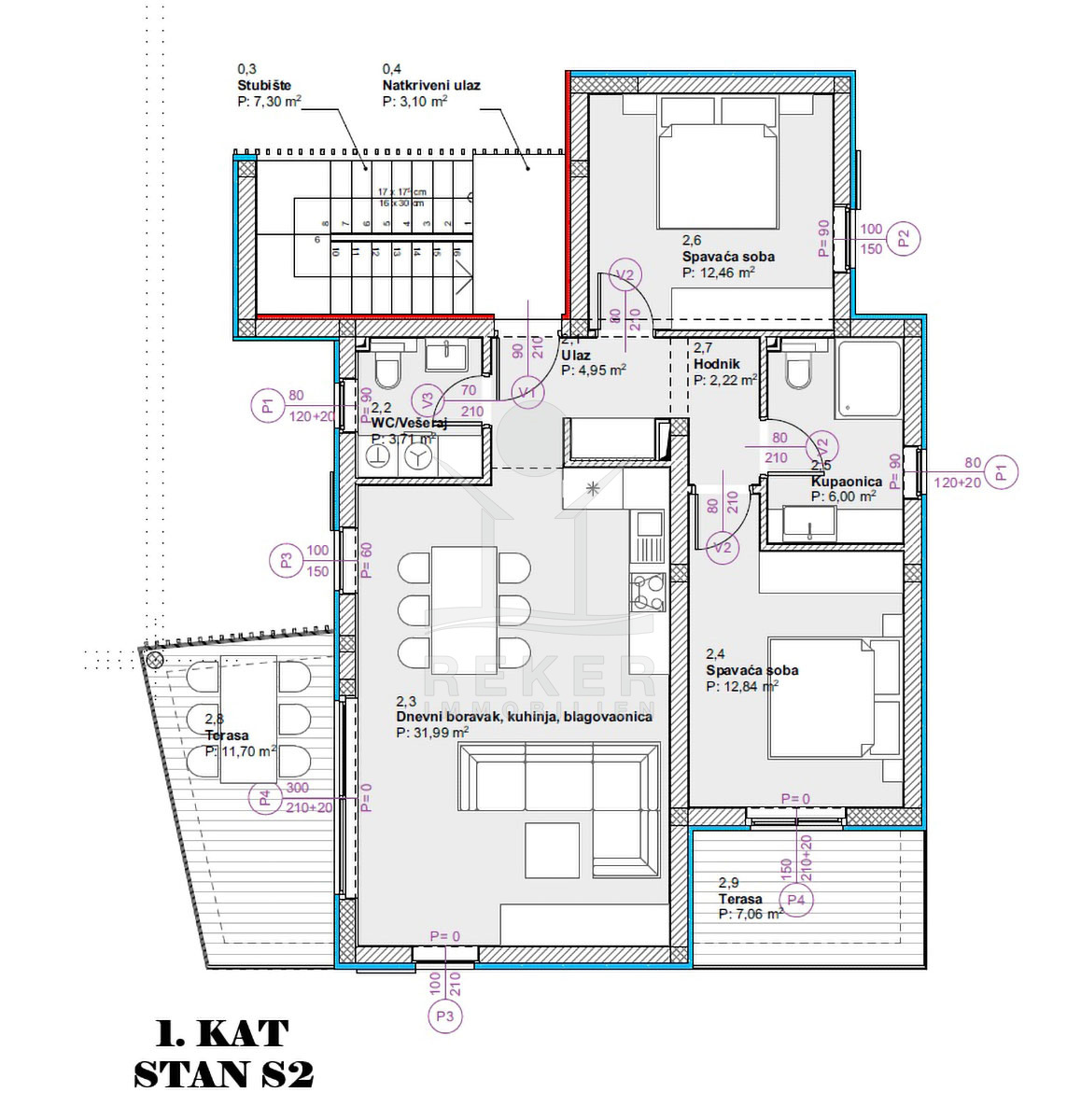 Das Projekt besteht aus zwei modernen Gebäuden. Klare Linien, helle Fassaden, großzügige Balkone. In jedem Haus gibt es lediglich drei Wohnungen – je eine pro Etage. Das sorgt für Ruhe und Privatsphäre. Die Gebäude sind hochwertig gebaut und auf Komfort ausgelegt: durchdachte Grundrisse, viel Licht, hohe Funktionalität. Jede Wohnung bekommt eigenen Stellplatz direkt vor dem Haus. Die Freifläche ist gepflastert, gepflegt und von viel Grün umgeben.