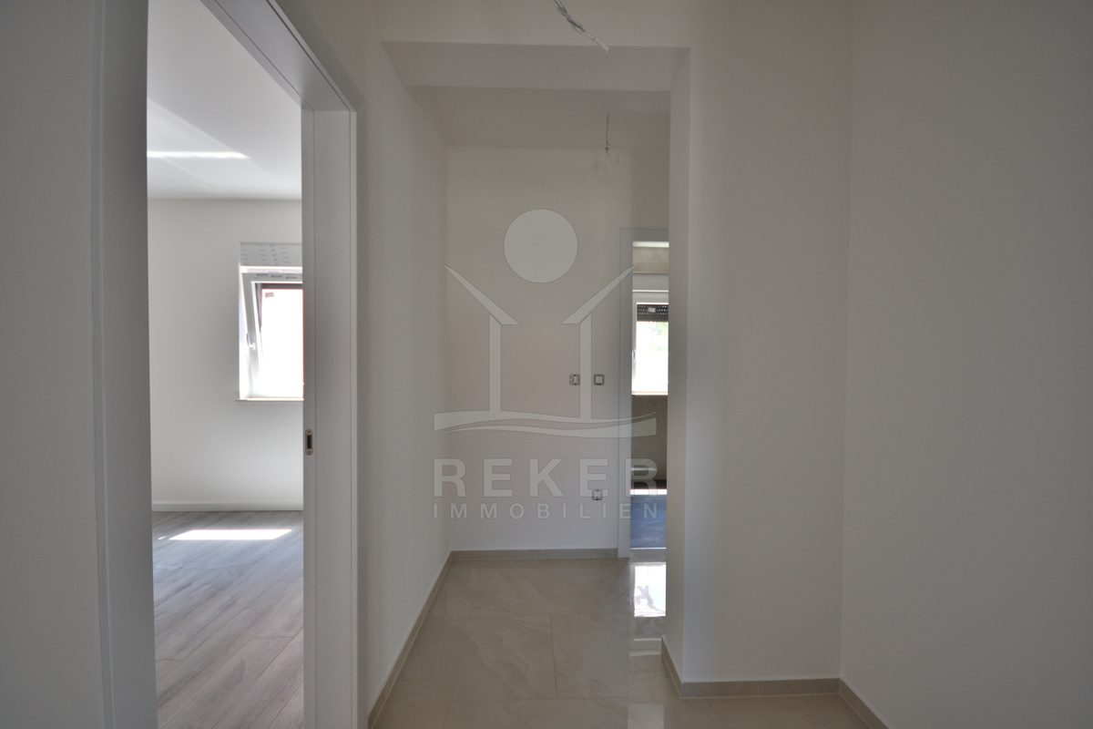 Vodice liegt direkt an der Küste, in einer beliebten, aber nicht überlaufenen Region. Die Wohngegend dieses Neubauprojekts ist ruhig und entspannt, kein Durchgangsverkehr, wenig Lärm. Der Strand ist nur rund 600 Meter entfernt, also bequem zu Fuß erreichbar. Auch das Ortszentrum mit Geschäften und Infrastruktur liegt in Gehweite, etwa 800 Meter. Die Nachbarschaft besteht überwiegend aus gepflegten Wohnhäusern mit Gärten und mediterranem Flair.