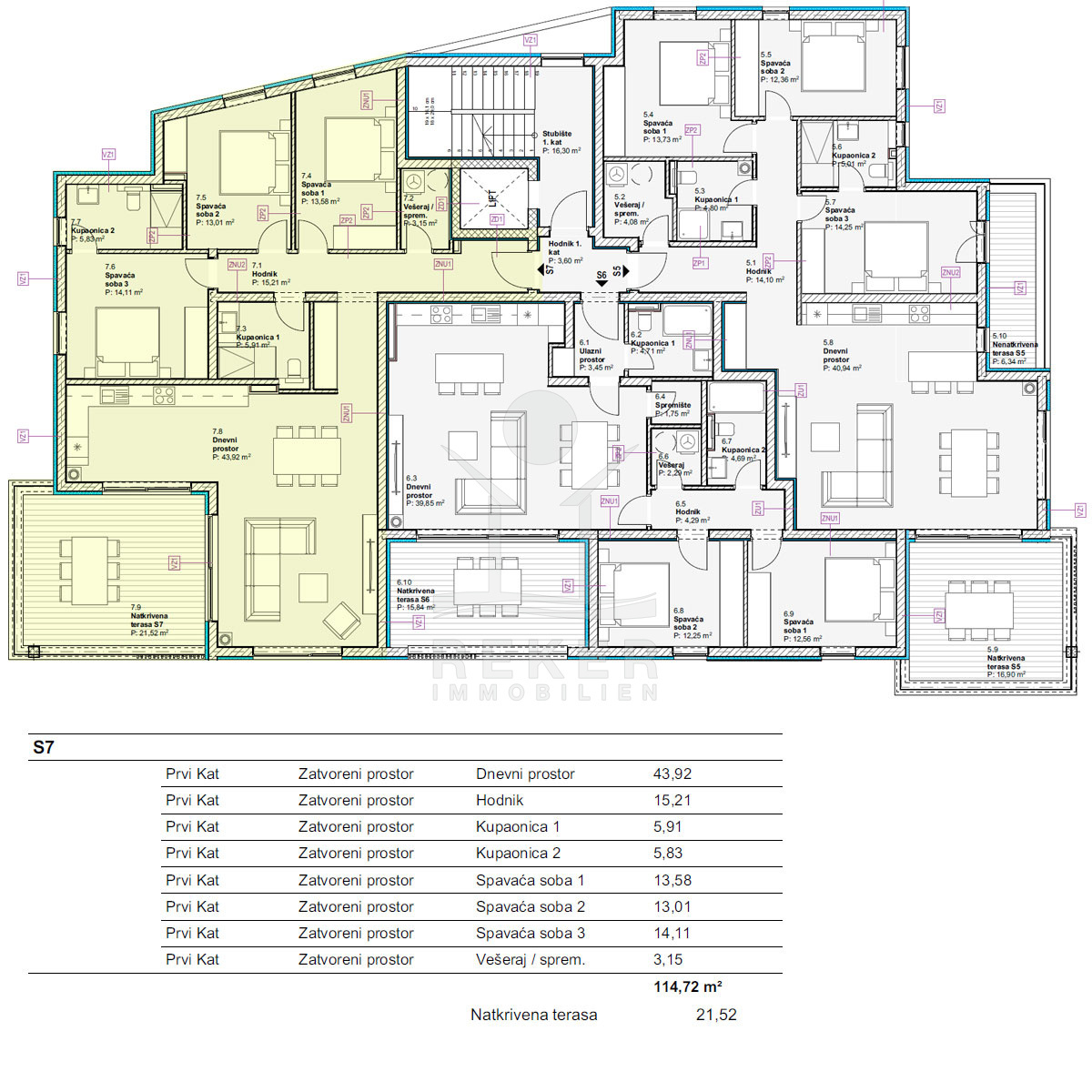 Überzeugen Sie sich von der großzügigen Gesamtfläche von 125 m², die Ihnen viel Raum für kreatives Wohnen bietet. Der Eingang und der Flur führen zu einem lichtdurchfluteten Wohnbereich, der den Wohn-, Ess- und Küchenbereich nahtlos miteinander verbindet und zum Entspannen und Verweilen einlädt. Diese Wohnung bietet 3 Schlafzimmer und 2 Badezimmer darunter ein Hauptschlafzimmer mit eigenem Badezimmer für maximalen Komfort und Privatsphäre. Genießen Sie entspannende Stunden auf dem überdachten Balkon mit 22 m², der Ihnen nicht nur Schutz vor den Elementen bietet, sondern auch großartige Ausblicke auf die Umgebung.
