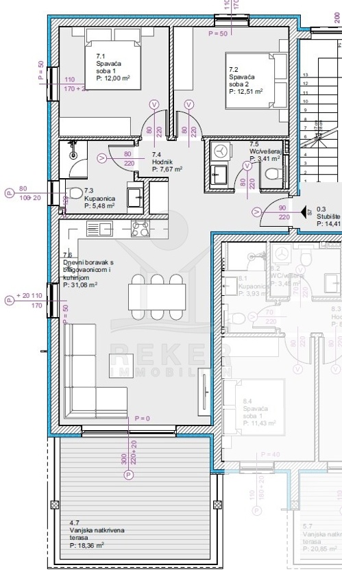 In Vodice entsteht ein Wohngebäude mit nur neun Einheiten. Die Lage ist ruhig, rund 1.400 m vom Meer und ebenso weit vom Stadtzentrum entfernt. So erreichen Sie Stadt und Meer in wenigen Minuten und haben dennoch genügend Abstand zur Umgebung. Geplant ist eine Bauweise nach modernen Standards. Großzügige Fenster öffnen den Panoramablick auf das Meer und die vorgelagerten Inseln. Der Baustart erfolgt im September 2025, die Fertigstellung ist für Herbst 2026 vorgesehen.