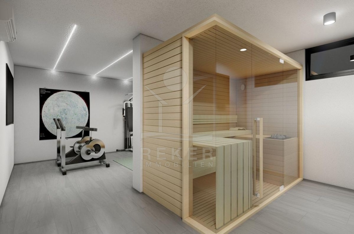 Für Fitness- und Wellnessliebhaber offeriert das Untergeschoss, einen geplanten Fitnessbereich und eine Sauna. Somit ist es der perfekte Ort, um sportlich aktiv zu sein oder sich zu entspannen und abzuschalten.