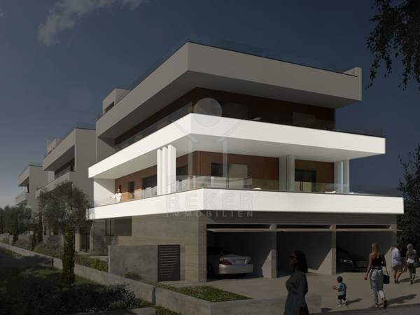 Das Gebäude? Hochwertig gebaut, mit einem klaren Fokus auf Design, Qualität und Ästhetik. Drei Etagen, zehn Wohnungen – jede für sich besonders. Im Erdgeschoss haben die Wohnungen private Gartenanteile. Die Einheiten im zweiten Obergeschoss verfügen über große Dachterrassen mit weitem Meerblick. Großzügige Grundrisse, große Fensterflächen, viel Tageslicht. Der Bau schreitet zügig voran, mit einer geplanten Fertigstellung im Mai 2026. Ein Aufzug verbindet alle Etagen. Jede Wohnung kommt mit zwei Stellplätzen – bei manchen auch inklusive Garage.