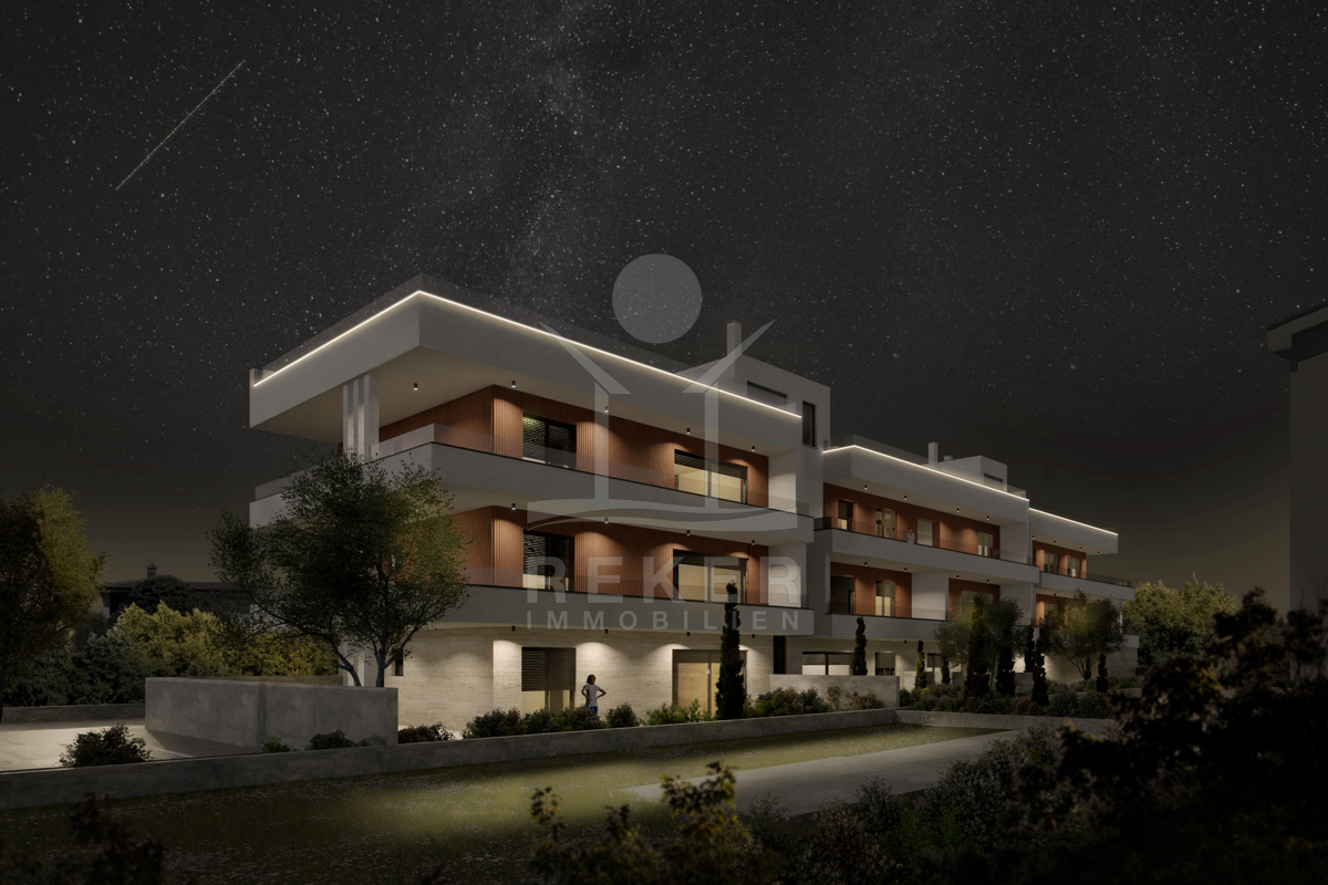Das Gebäude? Hochwertig gebaut, mit einem klaren Fokus auf Design, Qualität und Ästhetik. Drei Etagen, zehn Wohnungen – jede für sich besonders. Im Erdgeschoss haben die Wohnungen private Gartenanteile. Die Einheiten im zweiten Obergeschoss verfügen über große Dachterrassen mit weitem Meerblick. Großzügige Grundrisse, große Fensterflächen, viel Tageslicht. Der Bau schreitet zügig voran, mit einer geplanten Fertigstellung im Mai 2026. Ein Aufzug verbindet alle Etagen. Jede Wohnung kommt mit zwei Stellplätzen – bei manchen auch inklusive Garage.