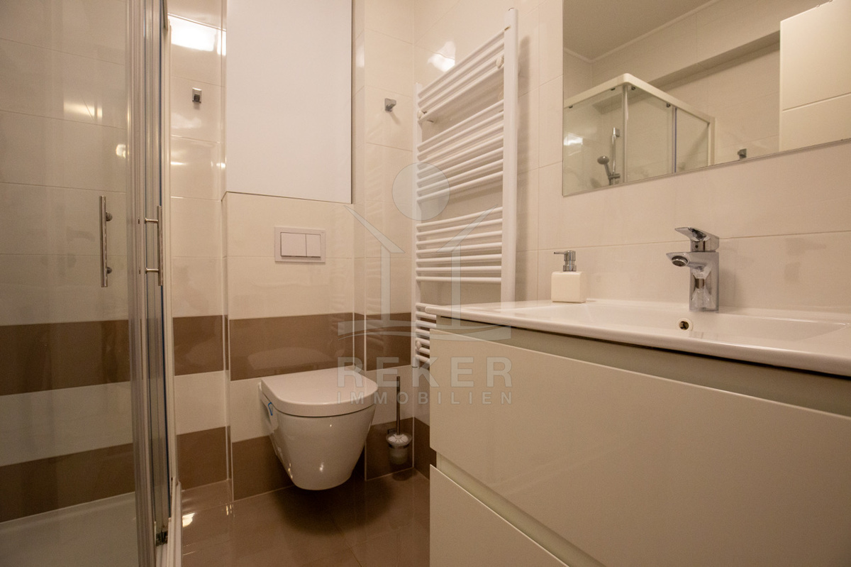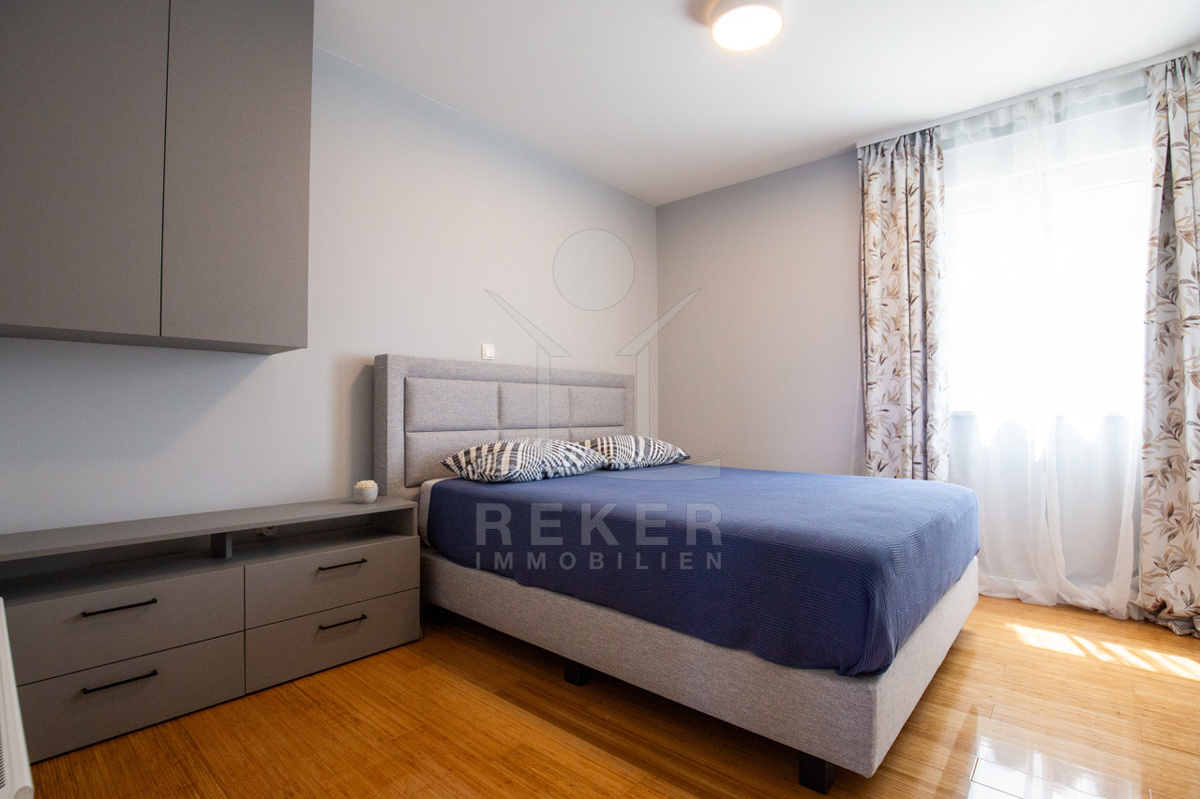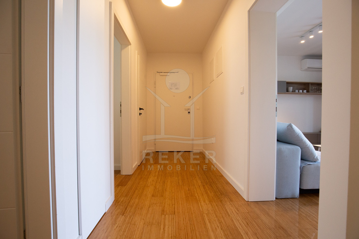 Offener Wohn-, Ess- und Kochbereich mit viel Tageslicht. Die Küche: modern, grifflos, mit Geräten in Markenqualität. Die beiden Schlafzimmer sind schlicht, aber hochwertig eingerichtet. Auch das Bad überzeugt – mit Glasdusche, Handtuchheizung und klarer Linienführung. Alles ist stimmig. Kein Renovierungsbedarf, keine Zusatzkosten. Die Wohnung wird voll möbliert verkauft … Sie brauchen nur noch den Koffer auszupacken.