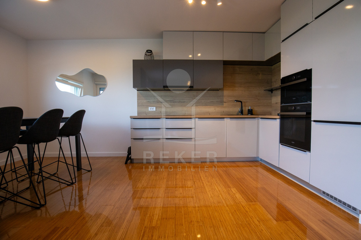 Wer an Zadar denkt, denkt an Meer. Und genau das liegt hier direkt vor Ihrer Tür. Diese exklusive Wohnung befindet sich in einem der besten Viertel der Stadt – ruhig, gepflegt, hochwertig. Die Nachbarschaft passt: wenige Schritte bis zum Strand, kein Durchgangsverkehr, nur das Rauschen der Wellen.
