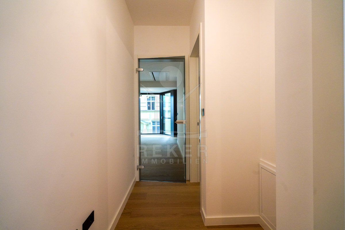 Die luxuriöse Neubauwohnung befindet sich in einem exklusiven Wohn- und Geschäftsgebäude mit insgesamt 10 Einheiten auf 4 Etagen. Die Wohnung erstreckt sich über 109 m² im 1. Stock und wurde 2023 fertiggestellt. Die hochwertige Ausstattung umfasst Gegensprechanlage, Sicherheitstüren, Wärmepumpe, Fußbodenheizung, elektrische Jalousien und Parkettböden. Das einzigartige Design betont Eleganz und spiegelt höchste Qualität wider, mit modernster Technologie und innovativen Smart-Home-Lösungen. Ein Aufzug sorgt für Komfort und ein Stellplatz in der Tiefgarage bietet bequeme Parkmöglichkeiten.