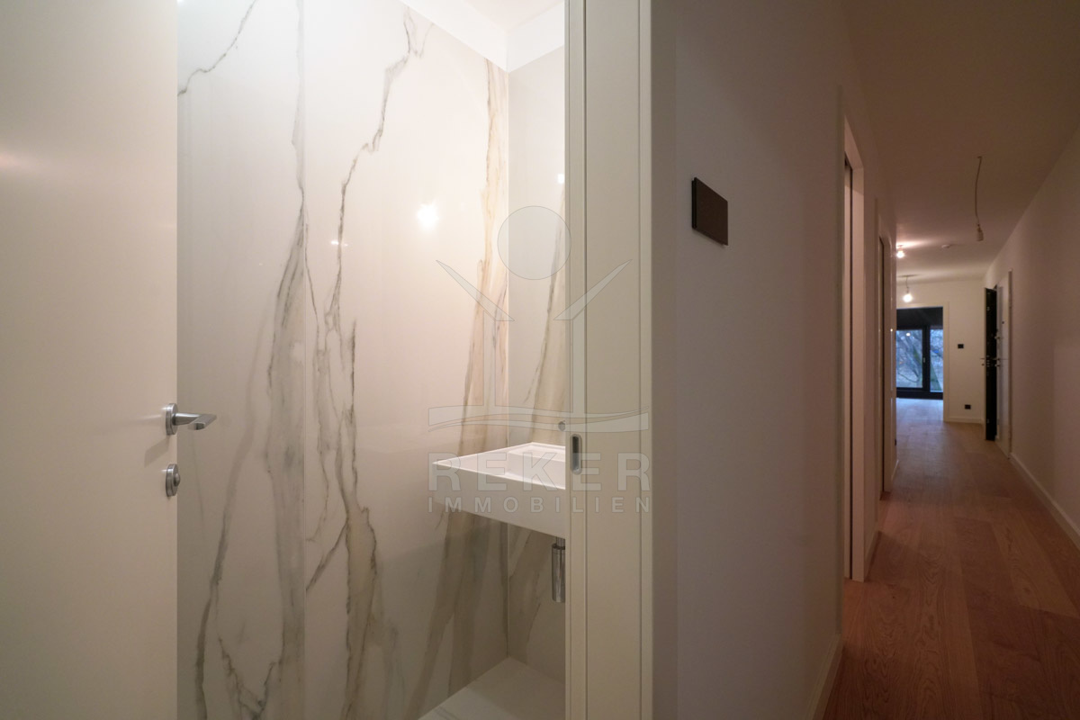 Die Neubauwohnung ist Teil eines prestigeträchtigen Wohngebäudes mit insgesamt 17 exklusiven Einheiten. Das einzigartige Design strahlt Eleganz und höchste Qualität aus und wird 2024 fertiggestellt. Das Gebäude verfügt über zwei Treppenhäuser mit Aufzug, die zu der geschmackvoll gestalteten Wohnung führen. Mit modernster Technologie, einschließlich des intelligenten Smart-Home-Systems "Crestron", setzt diese Wohnung Maßstäbe für eine bequeme Steuerung von Beleuchtung, Jalousien, Heizung und Kühlung. Der Erstbezug bietet die Möglichkeit, in ein modernes und innovatives Zuhause einzuziehen, das Luxus auf höchstem Niveau verspricht.