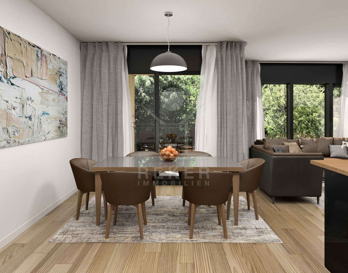 Die 143,28 m² große Wohnung wird mit einer Klimaanlage, Fußbodenheizung und einer effizient betriebenen Luft/Wasser-Wärmepumpe ausgestattet sein. Der großzügige Grundriss umfasst ein offenes Wohnkonzept mit integriertem Ess- und Küchenbereich für Wohnen auf höchstem Niveau. Mit vier Schlafzimmern, drei Badezimmern, einem Gäste-WC und einem Hauswirtschaftsraum bietet diese Wohnung ausreichend Komfort und Platz für die ganze Familie. Die Loggia lädt zu entspannten Stunden im Freien ein und erweitert den Wohnbereich nach draußen.