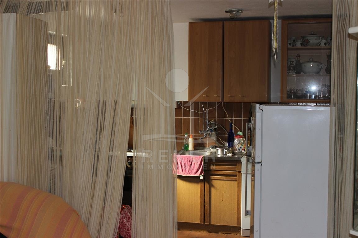 Das Erdgeschoss der Wohnung bietet eine Fläche von 52 m² und umfasst 2 Schlafzimmer, ein Badezimmer, eine Speisekammer sowie eine Küche mit Esszimmer, die umfassend renoviert werden muss. Hier haben Sie die Möglichkeit, Ihre eigenen Wohnideen zu verwirklichen und den Raum ganz nach Ihrem Geschmack zu gestalten.